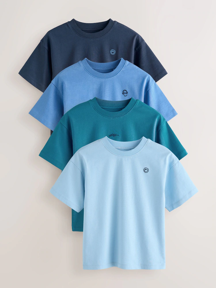 Blue Short Sleeve Logo Chest Graphic T-Shirts 4 Pack