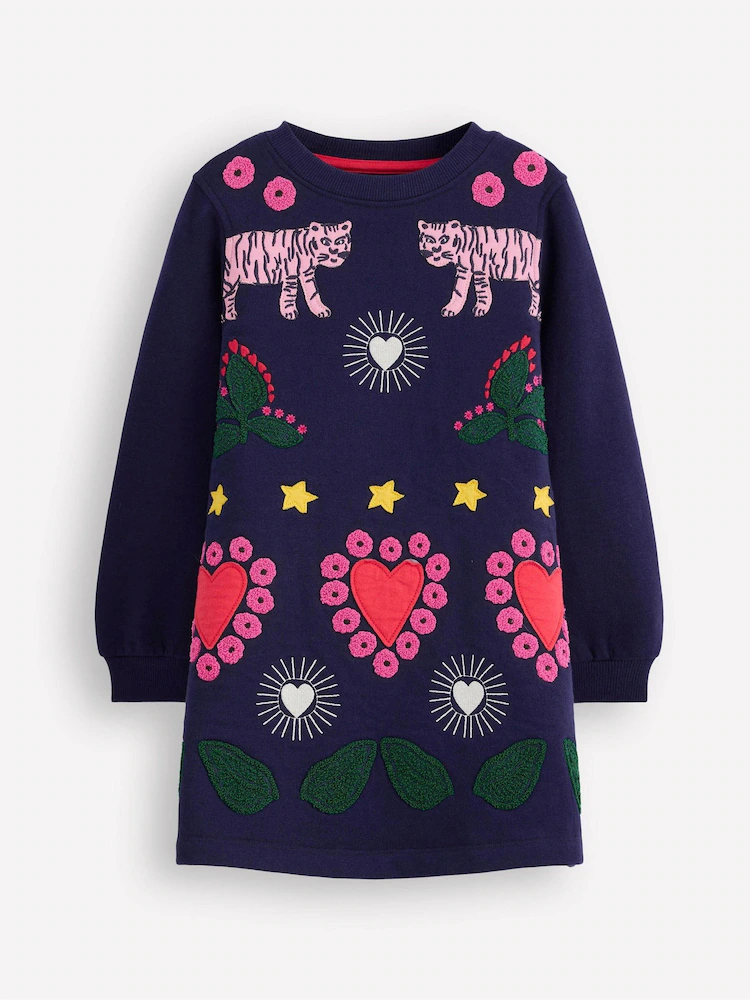 Boden Blue Ida Sweatshirt Appliqué Dress