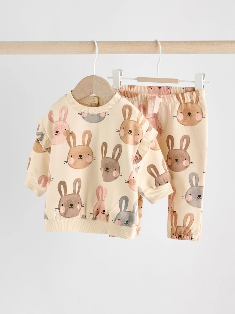 Cream- Pink Bunny Rabbit Baby Sweater and Joggers Set 2 Piece